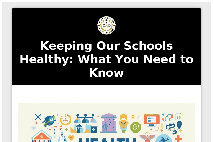 Keeping Our Schools Healthy: What You Need to Know Dear Sumter County Families This afternoon, we spoke with the Sumter County Health Dep. . .
