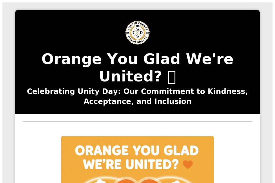 Orange You Glad We're United? Celebrating Unity Day: Our Commitment to Kindness, Acceptance, and Inclusion Dear Parents, Guardians, an. . .